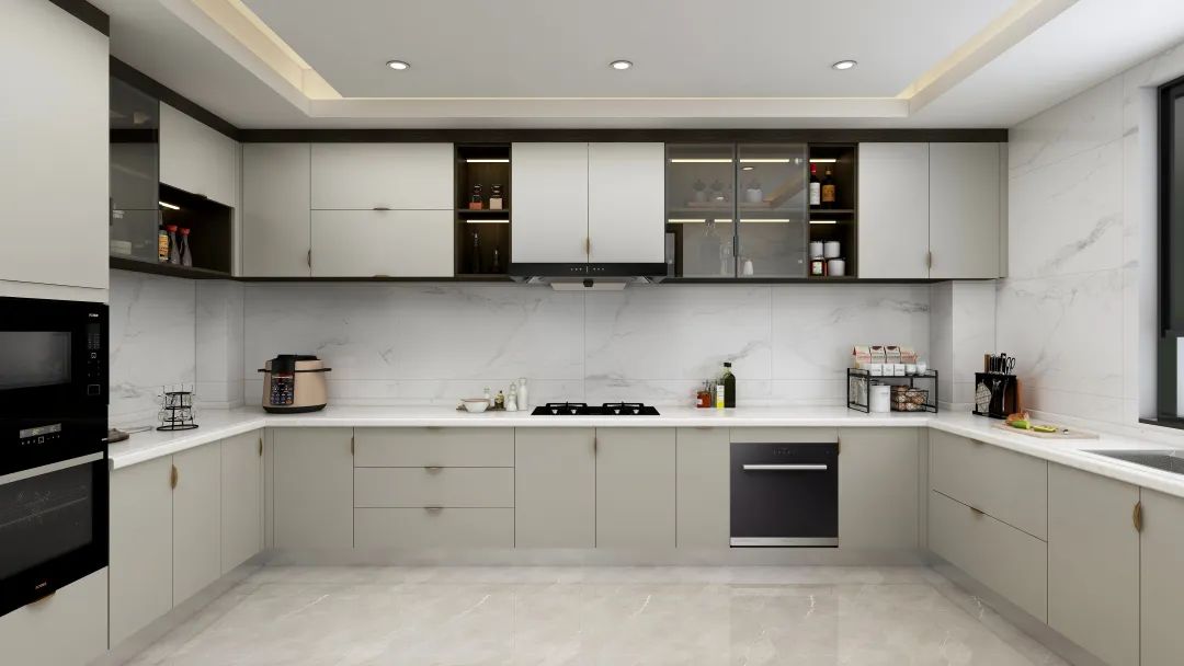 厨房以自然简约的高级色调塑造出时尚的效果,